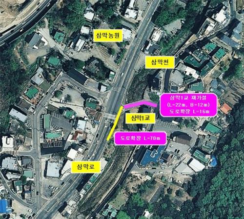 »ï¸··Î È®Àå°ø»ç´Â ³ëÈÄÇÑ »ï¸·1±³¸¦ Àç°¡¼³ ÇÏ´Â ¿¬Àå¼±¿¡¼ ÀÌ·ïÁ®, º¸Çà·ÎÀÇ ¾ÈÁ¤Àû È®º¸¿Í Â÷·®ÅëÇàÀÌ ¿øÈ°ÇØ Áú °ÍÀ¸·Î ¿¹»óµÈ´Ù. »ï¸·1±³ ±³·® ¼³Ä¡°ø»ç´Â ÇöÀç ÁøÇàÁß¿¡ ÀÖ´Ù. »ï¸·1±³ 22m¸¦ Æ÷ÇÔÇØ È®ÀåµÇ´Â µµ·ÎÀÇ ÃÑ ±æÀÌ´Â 108mÀÌ´Ù.