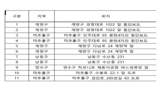ÁÖ¿ä °³¼± »çÇ×À¸·Î´Â ¿¬¼ö±¸ Çϸð´Ï·Î ÇØµ¸À̰ø¿ø ¹ö½ºÁ¤·ùÀå ¾Õ ¹æÈ£¿ïŸ¸® ¼³Ä¡, °è¾ç±¸ °è¾ç¿ª ¾Õ ±³Åë¾ÈÀü Ç¥ÁöÆÇ ¼³Ä¡, ³²µ¿±¸ ¼ö»êµ¿ µµ·Î ¾Õ ¹«´Ü Ⱦ´Ü ±ÝÁö½Ã¼³ ¼³Ä¡ µî 11°ÇÀÌ´Ù.