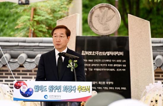 9¿ù 11ÀÏ ¿ù¹Ìµµ °ø¿ø ¿øÁֹΠÈñ»ýÀÚ À§·Éºñ¿¡¼´Â ÀÎõ»ó·úÀÛÀü 74Áֳ⠱â³ä½ÄÀÇ ÀÏȯÀ¸·Î ¿øÁֹΠÈñ»ýÀÚ Ã߸ð½ÄÀÌ ÁøÇàµÉ ¿¹Á¤À̸ç, Ã߸ð½Ä¿¡´Â À¯Á¤º¹ ÀÎõ½ÃÀåÀ» ºñ·ÔÇÑ ÇØ±ºÂü¸ðÃÑÀå, ÇØº´´ë »ç·É°ü, ½ÃÀÇȸ ÀÇÀå°ú Áß±¸Ã»Àå, ¿ù¹Ìµµ ¿øÁֹΠ±ÍÇâ´ëÃ¥À§¿øÈ¸ À§¿øÀå µî 100¿© ¸íÀÌ Âü¿©ÇÒ ¿¹Á¤ÀÌ´Ù.