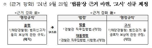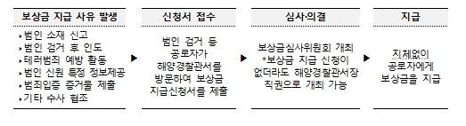 ¹üÀÎ °Ë°Å µî °ø·ÎÀÚ º¸»óÀ̶õ ¡ã ¹üÀÎ ¼ÒÀç ½Å°í ¡ã ¹üÀÎ °Ë°Å ÈÄ Àεµ ¡ã Å×·¯¹üÁË ¿¹¹æ Ȱµ¿ ¡ã ¹üÀÎ ½Å¿ø ƯÁ¤ Á¤º¸Á¦°ø ¡ã ¹üÁËÀÔÁõ Áõ°Å¹° Á¦Ã⠡㠱⟠¼ö»ç ÇùÁ¶ µî ¼ö»ç Ȱµ¿¿¡ µµ¿òÀ» ÁØ »ç¶÷¿¡°Ô ±× °ø·Î¸¦ ÀÎÁ¤Çϰí ÀÏÁ¤ ±Ý¾×À» Áö±ÞÇÏ´Â Á¦µµ¸¦ ¸»ÇÑ´Ù.