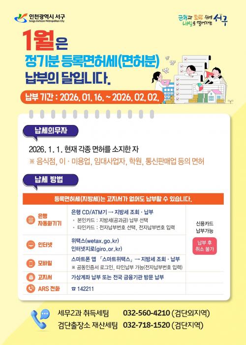 1¿ù Á¤±âºÐ µî·Ï¸éÇã¼¼(¸éÇã)´Â 2026³â 1¿ù 1ÀÏ ÇöÀç À½½ÄÁ¡, ÀÌ¡¤¹Ì¿ë¾÷, ÀÓ´ë»ç¾÷ÀÚ, Çпø, Åë½ÅÆÇ¸Å¾÷ µîÀÇ °¢Á¾ ¸éÇ㸦 ¼ÒÁöÇÑ ÀÚ¿¡°Ô ºÎ°úµÈ´Ù.
